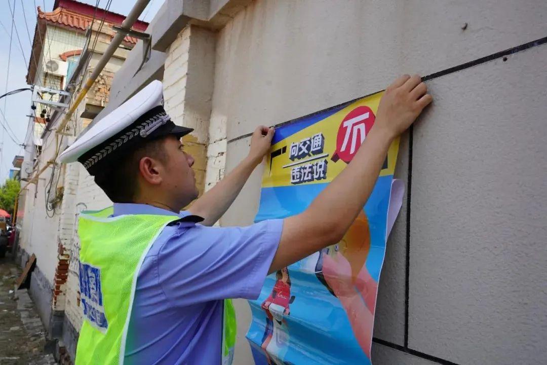 集市墻面、攤位旁,民警認(rèn)真張貼交通安全海報(bào),“向交通違法說不”等標(biāo)語醒目亮眼。把交通安全知識(shí)“貼”進(jìn)生活場(chǎng)景,讓往來群眾隨時(shí)能看到,潛移默化提升安全意識(shí)。