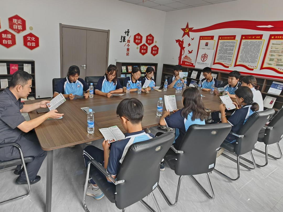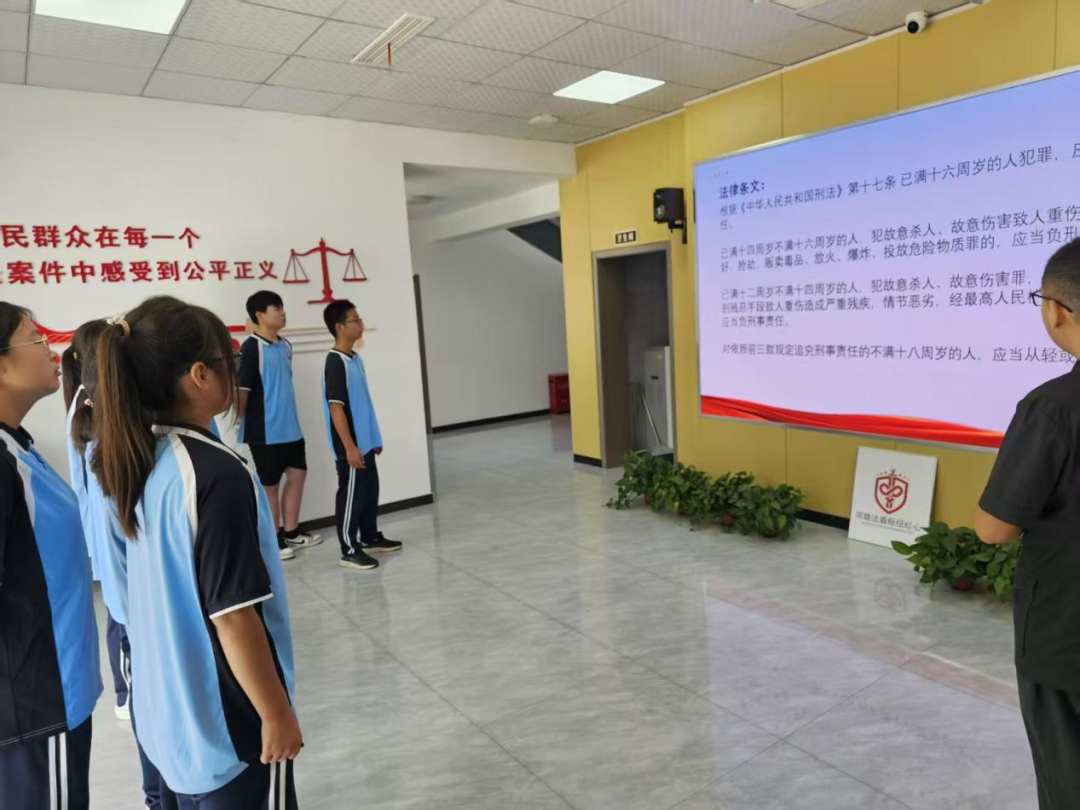 老師和學(xué)生們參觀了安檢室、信訪接待室、調(diào)解室、訴訟服務(wù)中心,負(fù)責(zé)人郭智輝介紹法庭黨建和審判融合工作開(kāi)展情況,如何以“黨建紅”引領(lǐng)“法治藍(lán)”,以司法裁判為“盾”筑牢法律底線,老師和學(xué)生們對(duì)黨建和審判融合工作有了深入的了解。