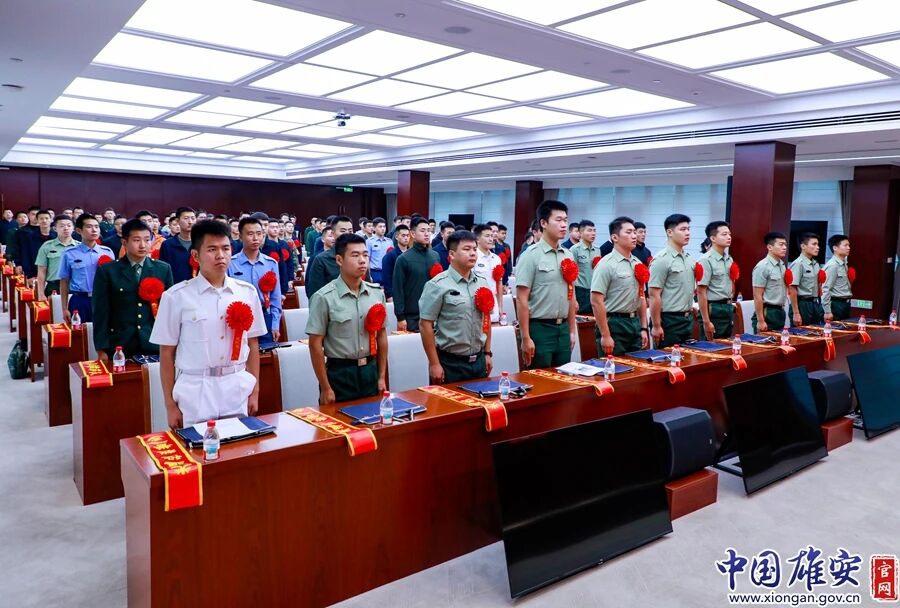 歡迎儀式上,全體人員肅立,齊唱國(guó)歌,與會(huì)領(lǐng)導(dǎo)為退役士兵佩戴綬帶。王紀(jì)平代表雄安新區(qū)黨工委、管委會(huì)向光榮返鄉(xiāng)的退役士兵表示熱烈歡迎,對(duì)他們?yōu)閲?guó)防事業(yè)作出的貢獻(xiàn)致以崇高敬意。