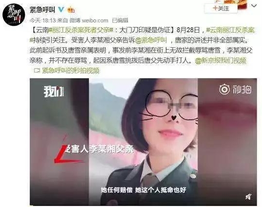 8月26日,封面新聞報道了云南麗江的一起反殺案,引發(fā)輿論較高關(guān)注。報道顯示,今年2月8日,麗江永勝縣一退伍女兵唐雪在返家途中遭遇醉酒男子李某某攔截辱罵后發(fā)生肢體沖突。次日凌晨1時許,李某某持刀擊砸唐家大門,唐雪攜帶刀具出門查看發(fā)生打斗后李某某遇刺身亡。永勝縣檢方認(rèn)定唐雪防衛(wèi)過當(dāng),應(yīng)以故意傷害罪起訴。多數(shù)網(wǎng)民認(rèn)為唐雪屬于弱勢一方,檢方定性存在問題。8月26日晚間,永勝縣政府新聞辦回應(yīng)稱案件正在辦理中。云南省檢察院也于次日通報稱,已派專員前往閱卷,對案件事實證據(jù)依法全面審查,指導(dǎo)案件辦理。唐雪代理律師殷清利向云南省檢察院提交撤訴申請,并稱將作無罪辯護(hù)。隨后,涉案雙方家屬在接受媒體采訪時披露更多案件細(xì)節(jié),但真相卻疑云密布,案件至今尚無最新進(jìn)展。