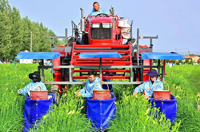有人帶頭種,還有機器來輔助?!?021年,機器進行了幾次試驗,如今,可以下地試運行了。”山西農(nóng)業(yè)大學教授鄭德聰說,懸掛式黃花菜輔助采收機將進一步降低人工勞動強度,提高采收效率。