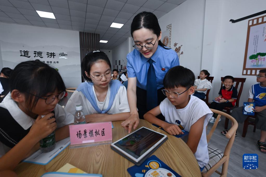 8月11日,湖州市南潯區(qū)檢察院第三檢察部副主任周思娟通過場景模擬游戲的形式,為黃泥兜村的孩子們普及未成年人保護知識。