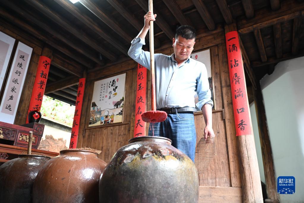 4月20日,屏南縣代溪鎮(zhèn)北墘村村民展示自己釀的黃酒。記者 林善傳 攝