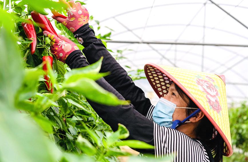 據(jù)介紹,在豐收季節(jié),彩椒產業(yè)基地每天聘請60多個村民采摘、分級、加工打包銷往湖南、上海、浙江等地,預計每年可采摘約160萬斤,產值約900萬元,為群眾增加務工收入150余萬元和增加村級集體經濟2.8萬元。