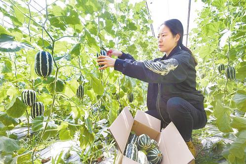 近日,游客在安次區(qū)仇莊鎮(zhèn)宋王務村甜瓜大棚里采摘甜瓜。 通訊員 楊佳琳 攝