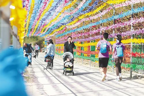 日前,游客在香河縣蔣辛屯鎮(zhèn)北李莊村水岸潮白景區(qū)內散步游玩。 通訊員 韓博陽 攝