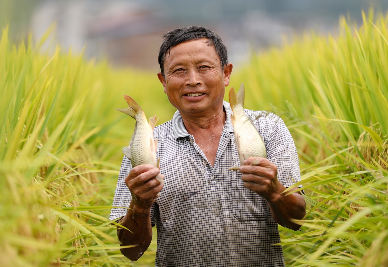 “快看!這條魚又大又肥?!苯?,在貴州省天柱縣高釀大壩稻漁綜合種養(yǎng)提升項(xiàng)目州級(jí)試驗(yàn)示范點(diǎn),村民伍名美雙手舉著稻田魚高興地說。