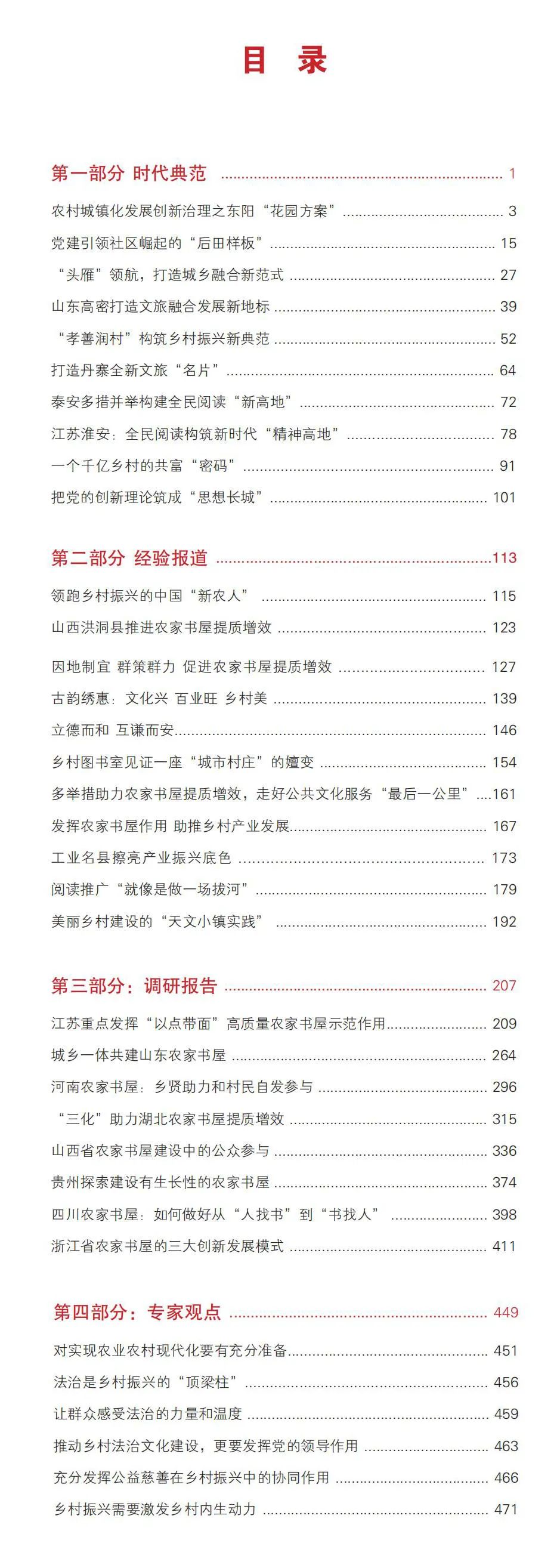 該書(shū)圖文并茂,由“時(shí)代典范”“經(jīng)驗(yàn)報(bào)道”“調(diào)研報(bào)告”“專(zhuān)家觀點(diǎn)”四個(gè)部分組成,作品“沾泥土帶露珠”,共計(jì)32萬(wàn)字。透過(guò)該書(shū),讀者能看到各地是如何與時(shí)俱進(jìn)創(chuàng)新發(fā)展農(nóng)家書(shū)屋、為鄉(xiāng)村振興提供“智慧屋”“充電樁”的;又是如何因地制宜、多措并舉大力發(fā)展產(chǎn)業(yè)經(jīng)濟(jì)的;還能看到各地如何凝聚農(nóng)民群眾的力量、壯大人才隊(duì)伍,使其在鄉(xiāng)村振興中大顯身手……