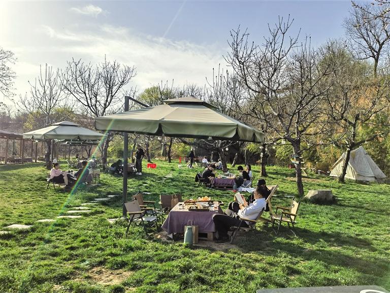 “現(xiàn)在是春天,大家喜歡在戶外感受大自然。夏天和冬天,窯洞里溫度舒適,是最受歡迎的?!笨Х鹊甑觊L鄭鑫毅是一個(gè)年輕的小伙兒,也是第一個(gè)來村里投資的人。他告訴記者,他一直想找一處鄉(xiāng)野田園氣息濃厚、視野開闊、有特色的地方做戶外咖啡。當(dāng)初,他來到南大康村時(shí),這里的環(huán)境首先吸引了他。后來,他看到這幾孔土窯洞和院子,當(dāng)即決定把店開在這里。