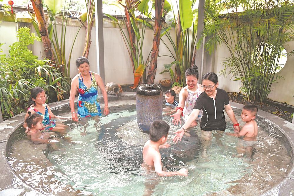 5月20日,游客在九八號民宿體驗溫泉 夏海濱 攝