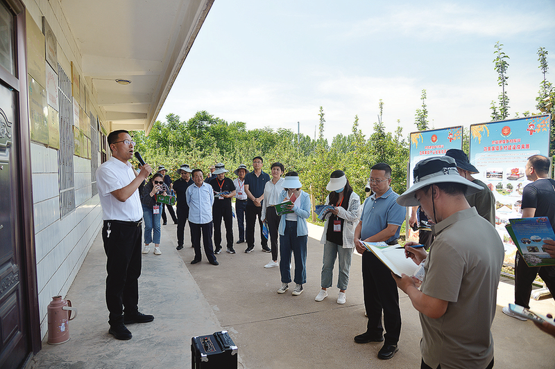 鳳翔區(qū)范家寨鎮(zhèn)鎮(zhèn)長張革新(左)介紹相關(guān)情況