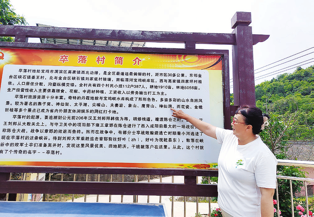 卒落村黨支部書記賈寶霞介紹,卒落村地名要追溯到兩千多年前。公元前206年,漢王劉邦拜韓信為將,采用“明修棧道,暗度陳倉”的戰(zhàn)略戰(zhàn)術(shù),反攻項羽。當(dāng)時,劉邦暗中從故道出大散關(guān),出奇制勝,與守衛(wèi)關(guān)中的項羽部下雍王章邯在陳倉進行了一場戰(zhàn)役。這是劉邦入咸陽前的一場重要戰(zhàn)役,稱為楚漢戰(zhàn)爭時期的陳倉之戰(zhàn),戰(zhàn)役以章邯敗退告終。