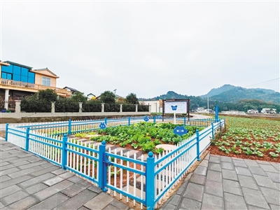 在四川省巴中市恩陽(yáng)區(qū)海山村過(guò)街樓聚居點(diǎn),道路旁的土地上,低低的柵欄圈起一小片農(nóng)田,農(nóng)田旁就近建起了格柵池和集中大三格化糞池。