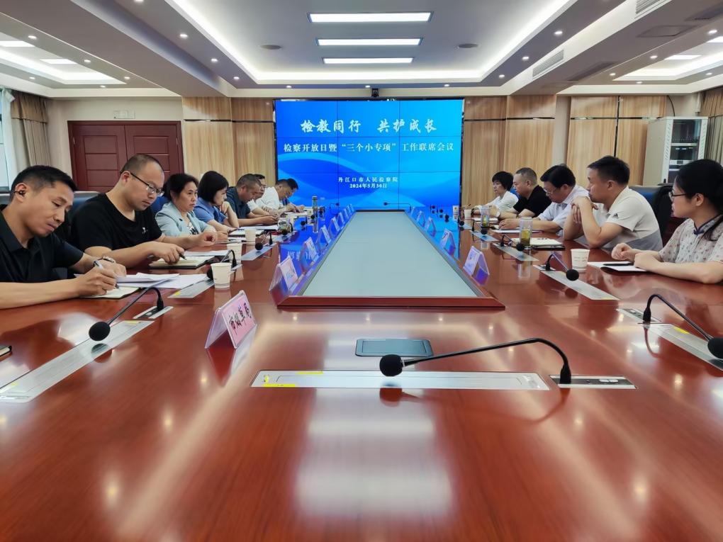 近日,湖北省丹江口市人民檢察院同當(dāng)?shù)厥袌?chǎng)監(jiān)督管理局、教育局、煙草專賣局等相關(guān)單位,共同開展“檢教同行 共護(hù)成長(zhǎng)”檢察開放日暨“三個(gè)小專項(xiàng)”工作聯(lián)席會(huì),共同凝聚未成年人保護(hù)工作共識(shí)。