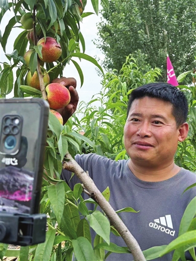 其實(shí)于志海最初是靠種植黃油桃出名的。如今他不但沒丟了這門手藝,還精進(jìn)了——在大棚里種黃油桃,用的還是以鵝養(yǎng)地妙招。“棚里的桃能比田地里早一個(gè)月上市,一斤能多賣出10多塊錢呢。”他說今年長(zhǎng)勢(shì)不錯(cuò),明年準(zhǔn)備擴(kuò)大大棚桃樹栽種面積。(照片由受訪者提供)