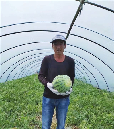 他在第二年換了兩個(gè)品種,炸瓜率降到20%,第三年的品種瓜秧子大、不吃肥,坐不住果,到了第四年,在淘汰了八九個(gè)品種后,錢連來終于找到了滿意的西瓜品種。