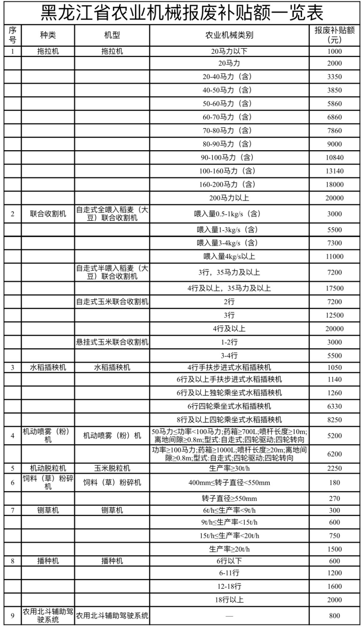 補(bǔ)貼標(biāo)準(zhǔn)一覽(黑龍江省農(nóng)業(yè)農(nóng)村廳供圖)