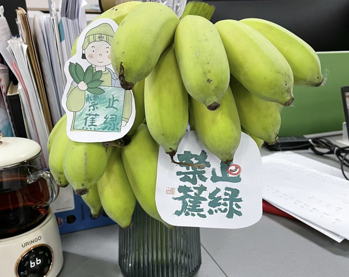 辦公桌上擺放的“禁止蕉綠”(資料圖)