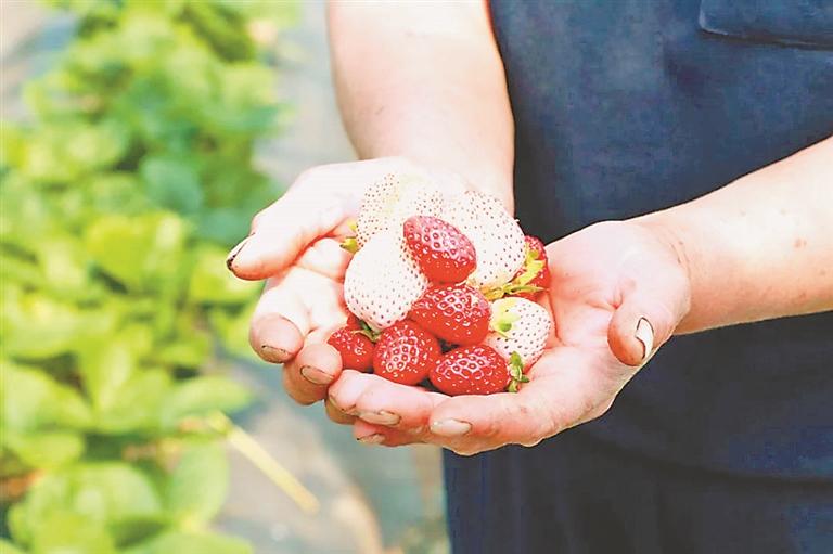 “看這白里透粉的草莓,味道就是剛剛好?!睎|山村村民王淑玲熱情地給大家介紹怎么找熟草莓,“今年的白草莓比蜂蜜都甜,我家種了兩個大棚,供不應(yīng)求,明年還得擴(kuò)大規(guī)模?!?/p>