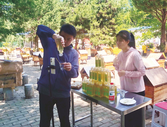 普社村第一場(chǎng)直播開始時(shí),大山深處的大片洋槐花已開到了尾聲。景嘉麗和“90后”鎮(zhèn)紀(jì)檢干部劉勇一起站在鏡頭前,小蜜蜂在旁邊“嗡嗡嗡”地飛來飛去,鎮(zhèn)上干部圍站在鏡頭背后,很多村民也趕來看熱鬧。隨著直播間涌進(jìn)來的網(wǎng)友越來越多,提問也越來越多,兩人逐漸放松:“家人們,我們背后的山上全是洋槐樹,這里沒有污染,洋槐花蜜的品質(zhì)特別好。”首場(chǎng)直播,兩個(gè)小時(shí)賣出了300余單蜂蜜,價(jià)值2萬多元。對(duì)于一個(gè)地處大山深處的小鄉(xiāng)村而言,這個(gè)成績讓所有人喜出望外,也堅(jiān)定了高崖鎮(zhèn)繼續(xù)通過網(wǎng)絡(luò)直播幫助群眾銷售農(nóng)產(chǎn)品的信心,如今助農(nóng)直播成為該鎮(zhèn)常態(tài)化工作之一。