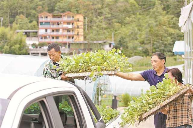 7月31日,武隆區(qū)雙河鎮(zhèn)木根村蔬菜育苗場(chǎng),工作人員正在搬運(yùn)培育好的菜苗