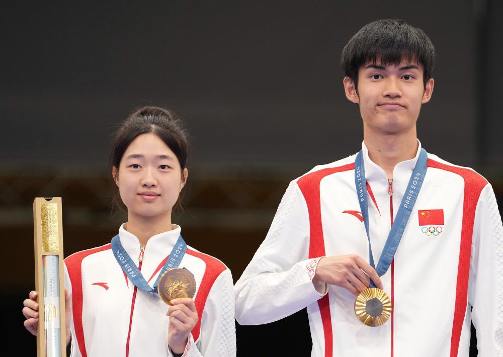 背景:北京時間7月27日,在法國沙托魯舉行的巴黎奧運會射擊10米氣步槍混合團體決賽中,17歲的黃雨婷搭檔19歲的盛李豪,一舉奪冠。7月29日,盛李豪和黃雨婷分別在個人項目上奪得一金一銀。