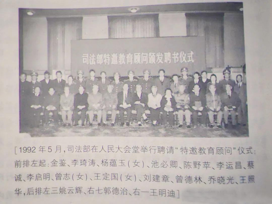 1992年5月,司法部會(huì)同中國(guó)關(guān)心下一代工作委員會(huì),聯(lián)合聘請(qǐng)陳野蘋、曾志、王照華、池必清、喬曉光、李啟明、李運(yùn)昌、劉建章、何光、曾德林、楊蘊(yùn)玉、張文松、李琦濤、王定國(guó)等十四位老同志擔(dān)任“司法部特邀教育顧問”,并在人民大會(huì)堂舉行了隆重的頒發(fā)聘書儀式。在這批德高望重的革命前輩的熱情參與下,監(jiān)獄管理機(jī)關(guān)的教育改造質(zhì)量和社會(huì)影響力有了新的提升。由于工作原因,我有幸親歷和見證了他們到監(jiān)獄開展幫教活動(dòng)的一幕幕感人至深的場(chǎng)景。