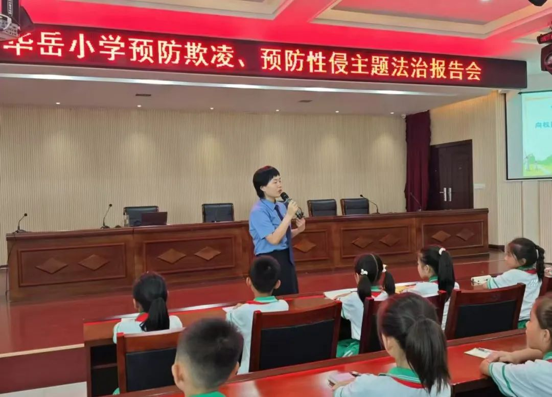 九月是秋風送爽的季節(jié),也是同學們新學期的開始。新學期、新開始,為進一步凈化校園環(huán)境,杜絕校園欺凌行為發(fā)生,不斷提高青少年的法治意識和自我保護能力。2024年9月9日下午,陜西省渭南市華陰市人民檢察院未檢干警受邀來到華岳小學,開展新學期的第一堂法治課。