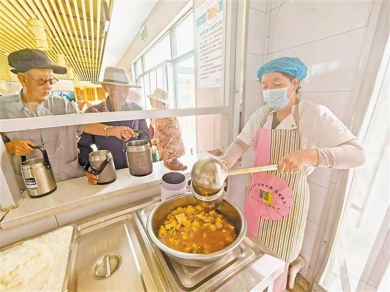 接過(guò)熱氣騰騰的飯菜,吳少山老伴的臉上洋溢著幸福的笑容?!懊罪垺刹艘粶?,天天不重樣,隔三岔五還能吃頓餃子,價(jià)格也實(shí)惠?!?/p>