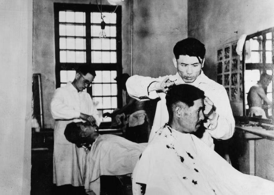 撫順戰(zhàn)犯管理所工作人員為戰(zhàn)犯理發(fā)