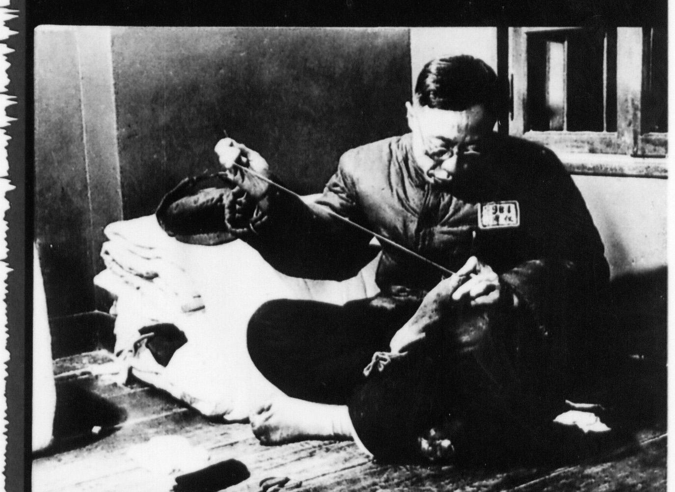 末代皇帝愛新覺羅·溥儀在補(bǔ)襪子