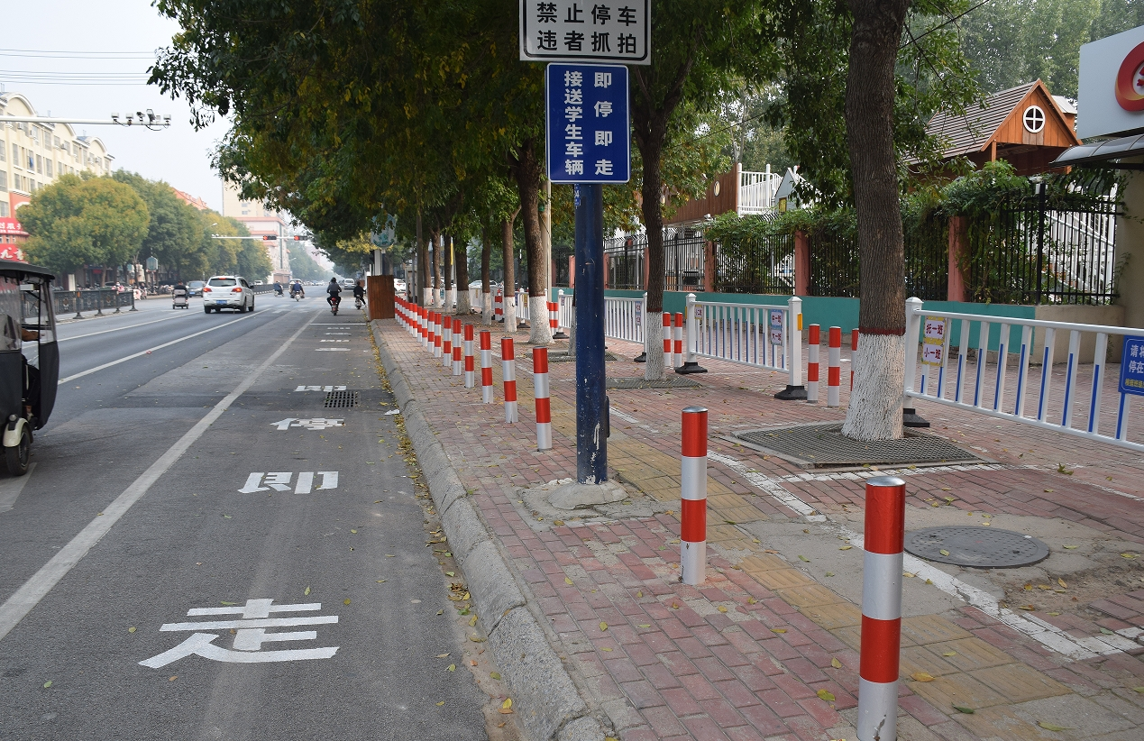 “N”即各學(xué)校的個(gè)性化改進(jìn)措施。在莘縣實(shí)驗(yàn)幼兒園門(mén)口,以往接送孩子的車(chē)輛往往存在著無(wú)序停放問(wèn)題,一到上下學(xué)高峰時(shí)段,人流車(chē)流很容易發(fā)生擁堵情況,也存在較大安全隱患。除了實(shí)施“12345”舉措,莘縣交警將幼兒園門(mén)口東路沿石以上的區(qū)域,劃分為家長(zhǎng)等候區(qū)和接送通道,家長(zhǎng)等候區(qū)使用間距1.5米的防撞隔離樁封閉,汽車(chē)不能進(jìn)入,電動(dòng)自行車(chē)可以進(jìn)入等待,有效解決了這些問(wèn)題。