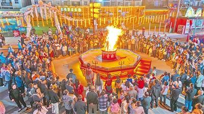 10月3日晚,游客在鄖陽(yáng)“武當(dāng)不夜城”觀看篝火晚會(huì) 通訊員 鄖宣 攝