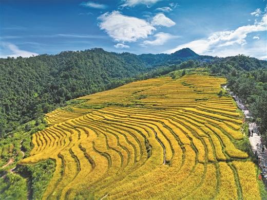金黃的稻浪隨風搖曳,飄香的瓜果沁人心脾,辛勤的農人載歌載舞……晚秋時節(jié),位于十萬大山北麓的廣西壯族自治區(qū)防城港市上思縣,處處彌漫著豐收的喜悅。