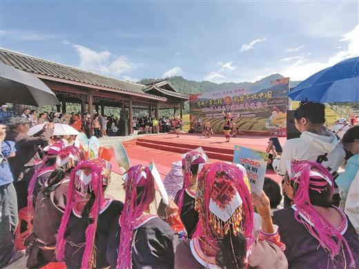 10月26日,2024年上思縣中國農民豐收節(jié)在該縣最為偏遠的村屯——南屏瑤族鄉(xiāng)常隆村百馬屯舉辦。在這里,百馬梯田金黃色的稻浪隨風起伏,一片豐收的景象?,幾迦罕娚碇?jié)日盛裝,載歌載舞,與來自五湖四海的游客共同歡慶。