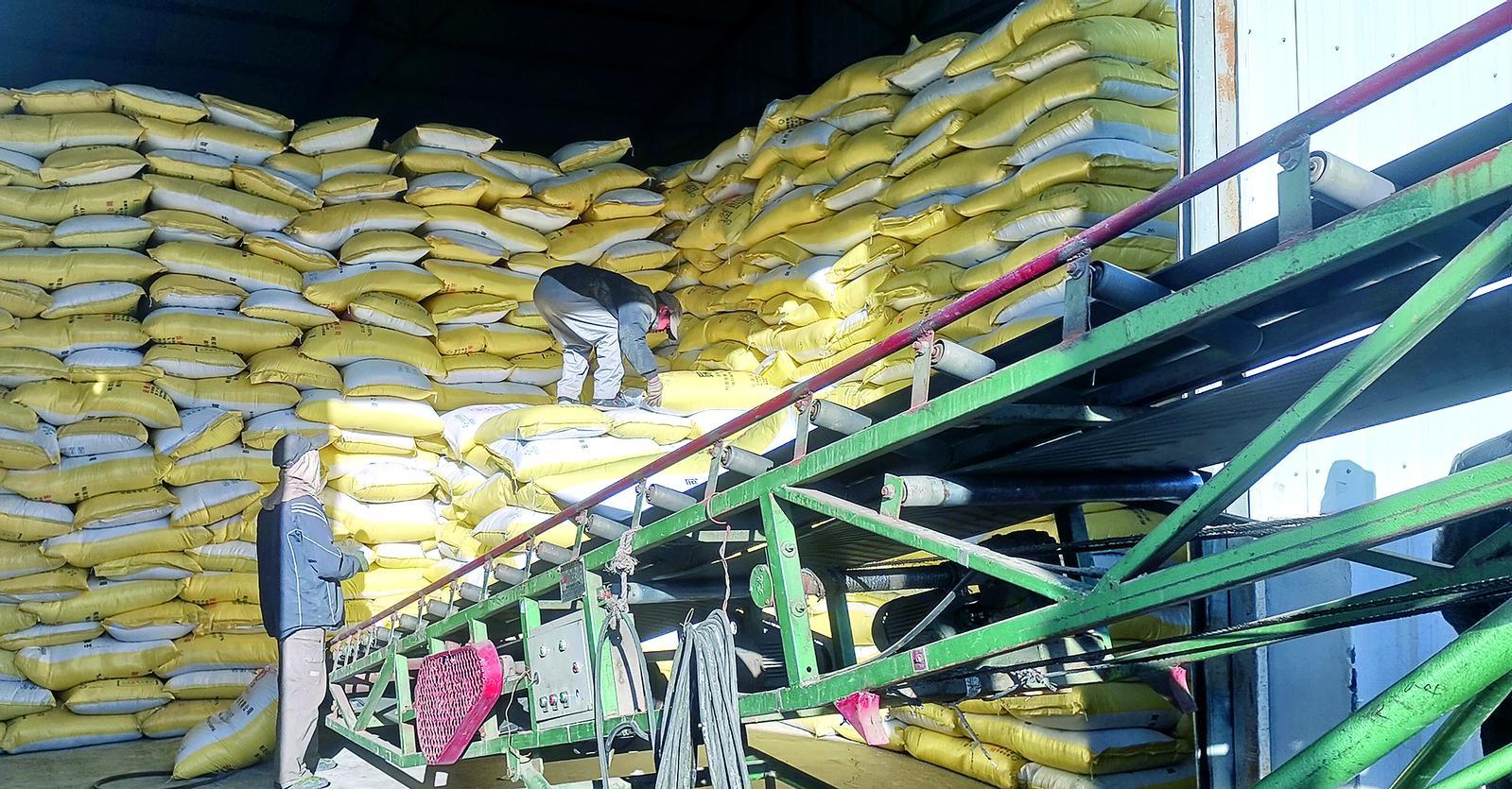 工人在搬運化肥等生產(chǎn)資料 記者 丁玉梅 攝