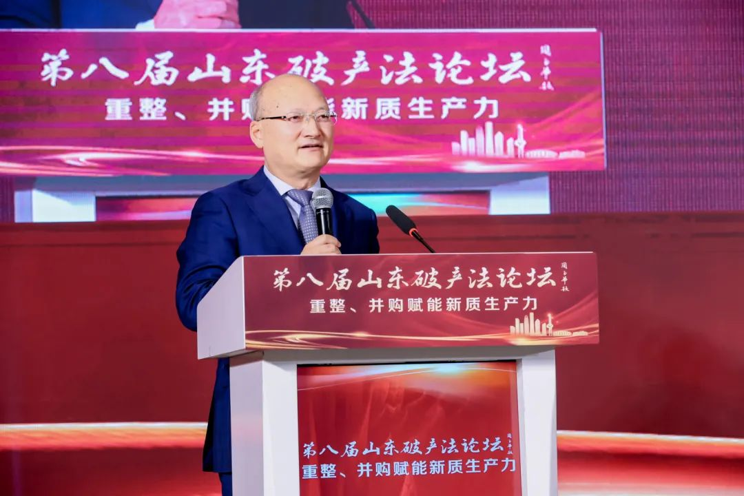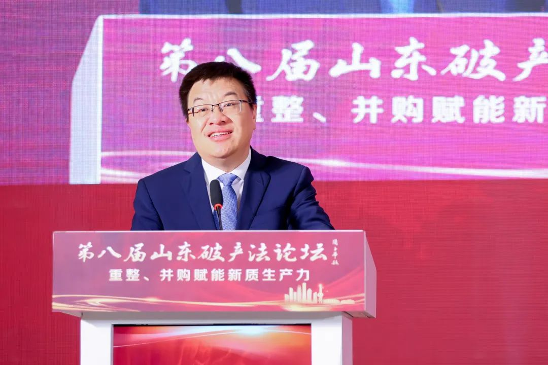 2024年11月10日,第八屆山東破產(chǎn)法論壇在濟南成功舉辦。本屆論壇由全聯(lián)并購公會、山東金融業(yè)聯(lián)合會、山東省不良資產(chǎn)處置協(xié)會、山東大學交叉法學研究院、浙江工商大學破產(chǎn)重組研究院、山東省法學會企業(yè)破產(chǎn)與重組研究會聯(lián)合主辦。本屆論壇緊緊圍繞“新質(zhì)生產(chǎn)力”的深刻內(nèi)涵,聚焦“重整并購賦能新質(zhì)生產(chǎn)力”這一核心主題展開研討。山東法學會企業(yè)破產(chǎn)與重組研究會名譽會長、山東省高級人民法院原院長周玉華;全國工商聯(lián)第十三屆常委、全聯(lián)并購公會會長尉立東;山東金融業(yè)聯(lián)合會秘書長何修崟;山東省不良資產(chǎn)處置協(xié)會會長李薇華;中國法學會世界貿(mào)易組織法研究會副會長兼秘書長、中國人民大學特聘教授石靜霞;華東政法大學國際金融法律學院教授、浙江省高級人民法院原民二庭庭長章恒筑出席開幕式。山東省法學會企業(yè)破產(chǎn)與重組研究會會長劉平主持開幕式。全國工商聯(lián)第十三屆常委、全聯(lián)并購公會會長尉立東,山東省不良資產(chǎn)處置協(xié)會會長李薇華在開幕式上致辭演講。6位主旨演講嘉賓、28位主題演講嘉賓圍繞各主題、議題,展開了為期一天的深入研討。全聯(lián)并購公會副會長、山東省法學會企業(yè)破產(chǎn)與重組研究會副會長兼秘書長、山東華信清算重組集團有限公司董事長提瑞婷作閉幕致辭。