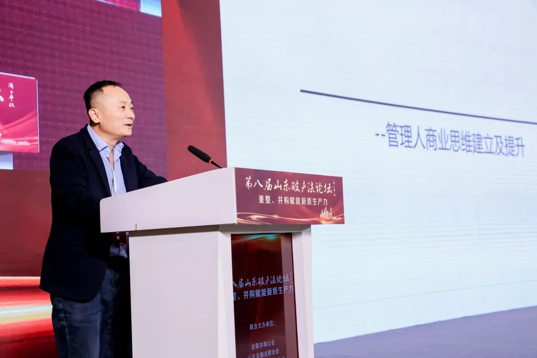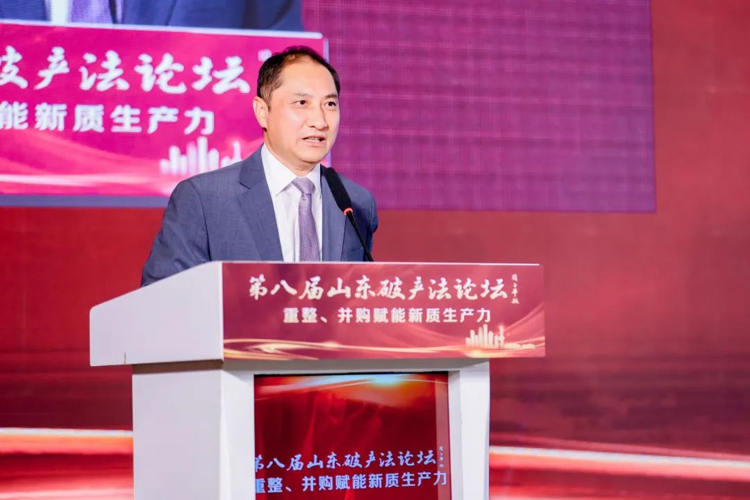 山東省不良資產(chǎn)處置協(xié)會李薇華會長在開幕致辭中對論壇的舉辦致以熱烈的祝賀。李薇華會長表示,黨的二十屆三中全會公報指出,高水平社會主義市場經(jīng)濟體制是中國式現(xiàn)代化的重要保障,要健全因地制宜發(fā)展新質(zhì)生產(chǎn)力的體制機制,發(fā)揮新質(zhì)生產(chǎn)力促進技術革命性突破、生產(chǎn)要素創(chuàng)新配置以及產(chǎn)業(yè)深度的轉(zhuǎn)型升級的重要作用。除發(fā)現(xiàn)新質(zhì)生產(chǎn)力發(fā)展中的獨特價值之外,我們還應對破產(chǎn)法在司法權運行機制、金融機構(gòu)風險處置、國企并購擔當?shù)确矫孢M行前沿探索與深入實踐。破產(chǎn)法的實施,離不開社會各界的交流與合作、共同努力,法院、協(xié)會、企業(yè)、院校、投融資機構(gòu)及從業(yè)者要共同攜手、形成合力,推動破產(chǎn)法制度的完善與實施。