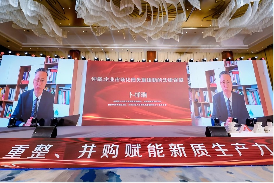 中國銀行業(yè)協(xié)會原首席法律顧問、中國仲裁法學研究會金融仲裁專委會主任、對外經(jīng)貿(mào)大學并購與重組研究中心首席專家卜祥瑞的發(fā)言題目為《仲裁:企業(yè)市場化債務重組新的法律保障》。卜祥瑞主任分析了仲裁在市場化債務重組中的作用,深入探討了仲裁機制如何為企業(yè)提供更加靈活、高效的爭議解決方案。他還分享了在當前經(jīng)濟環(huán)境下,企業(yè)如何利用仲裁手段優(yōu)化債務結(jié)構(gòu),降低重組成本,從而保障債權人和債務人權益的同時,維護金融市場的穩(wěn)定。最后,他提出在重整并購過程中,仲裁作為一種非訴訟解決爭議的方式,如何與司法程序相輔相成,共同促進企業(yè)債務重組順利進行的解決思路。