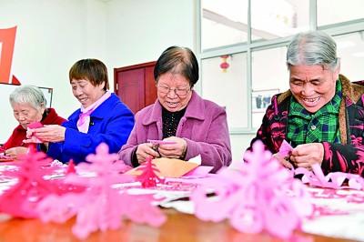 山東博興縣博華老年公寓文體活動室里,老人們在剪紙 新華社發(fā)