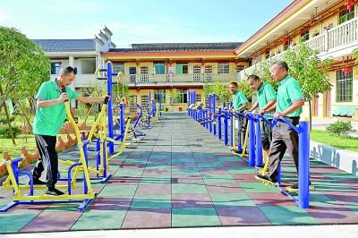 江西金溪縣瑯琚鎮(zhèn)養(yǎng)老服務(wù)中心內(nèi),老人們在鍛煉身體 鄧興東 攝