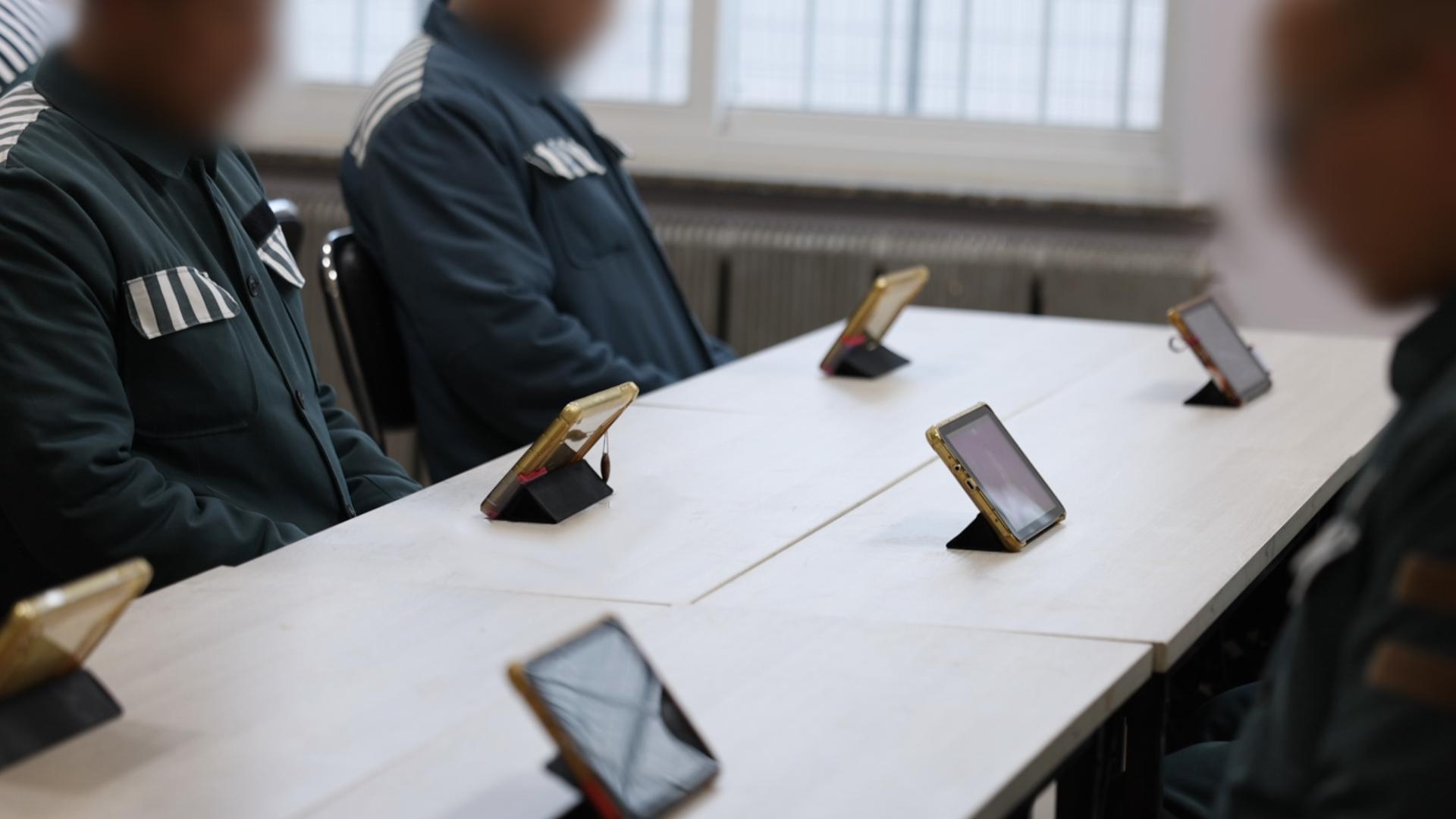 遼寧省大連南關(guān)嶺監(jiān)獄的罪犯在使用自主學(xué)習(xí)平板電腦