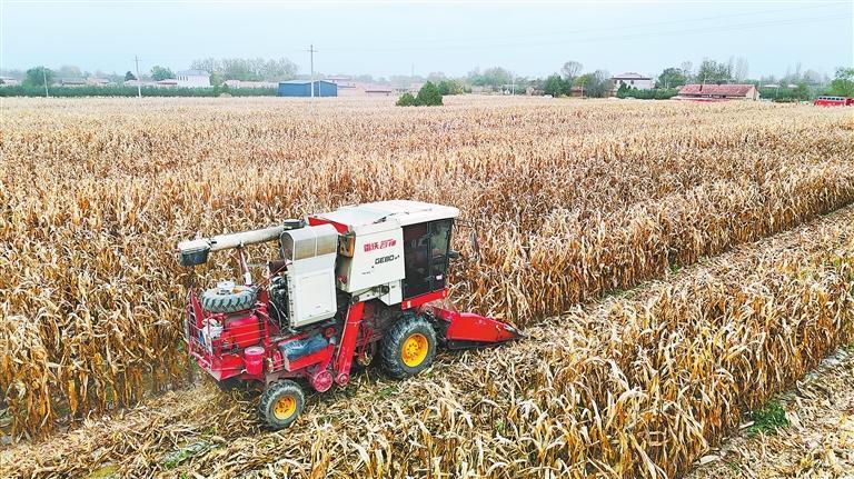 鎮(zhèn)原玉米種植示范基地機(jī)械化收獲玉米 記者 馮寶強(qiáng)
