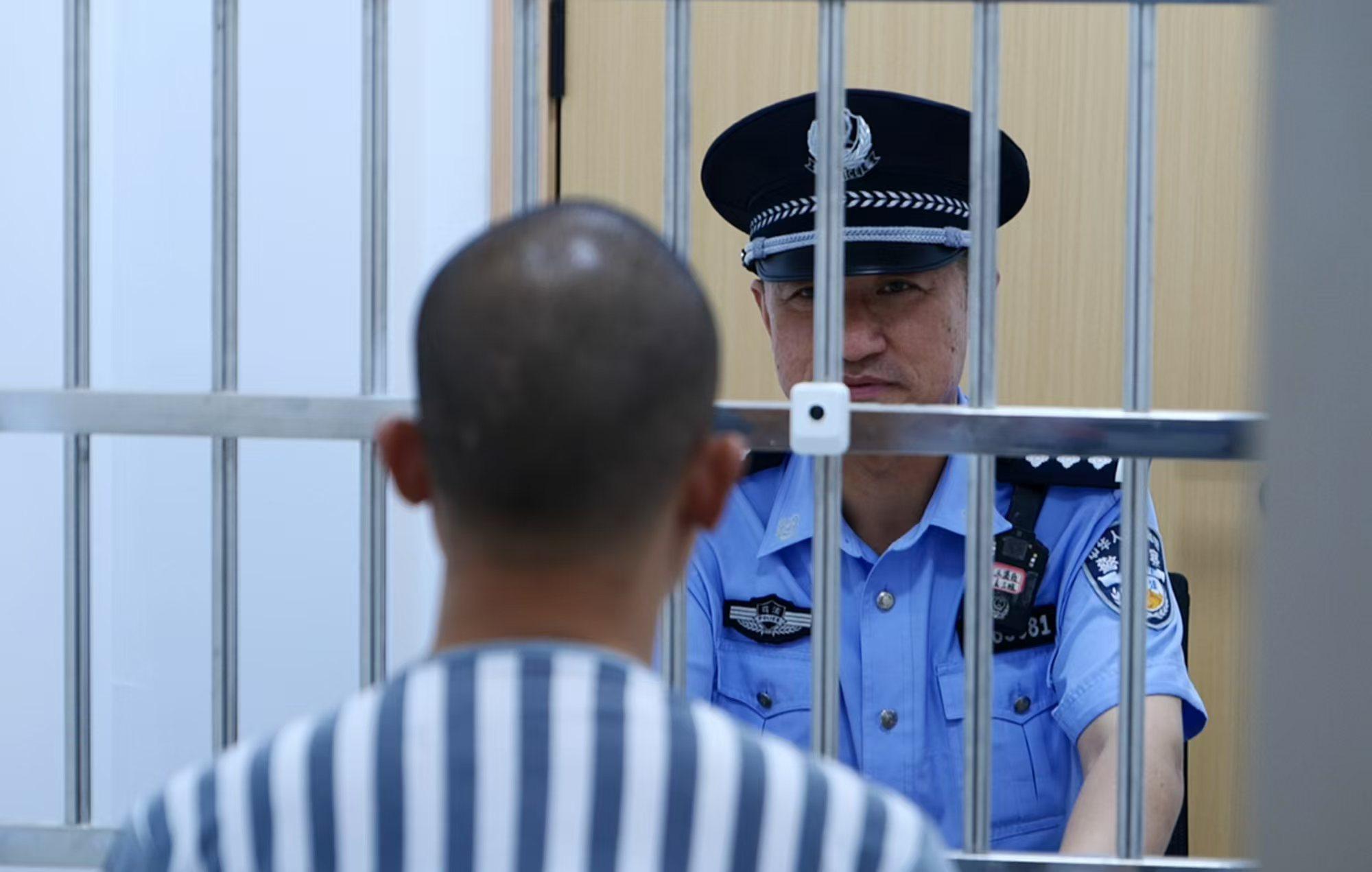 湖北省咸寧監(jiān)獄三監(jiān)區(qū)一級(jí)警長(zhǎng)鄭軍對(duì)罪犯進(jìn)行個(gè)別教育。李新/攝