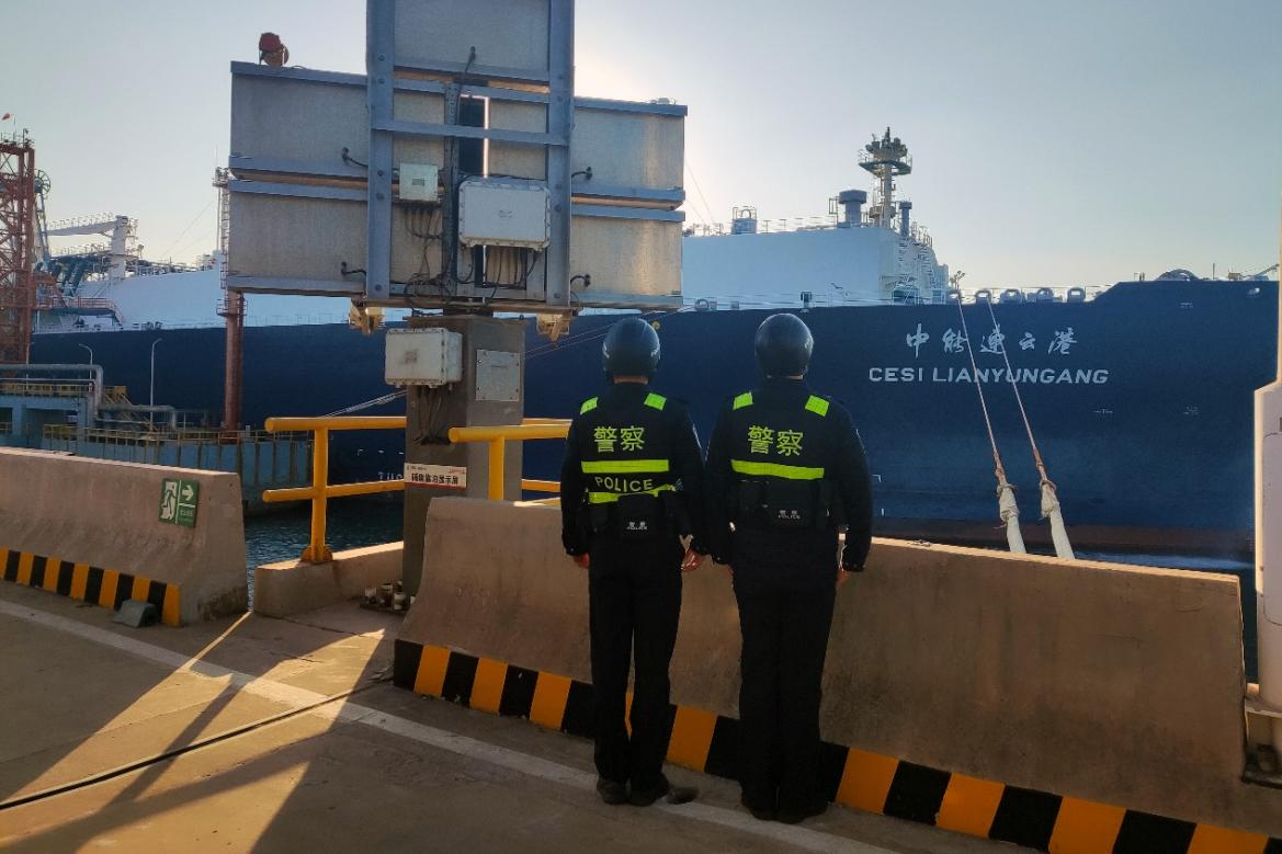 1月8日,從澳大利亞滿載而來的“中能連云港”號(hào)LNG運(yùn)輸船在山東出入境邊防檢查總站董家口邊檢站移民管理警察的監(jiān)護(hù)下平穩(wěn)抵達(dá)中國石化天然氣分公司青島LNG接收站,該輪帶來的17萬立方米液化天然氣將為山東省及周邊地區(qū)今冬保供增添新底氣。
