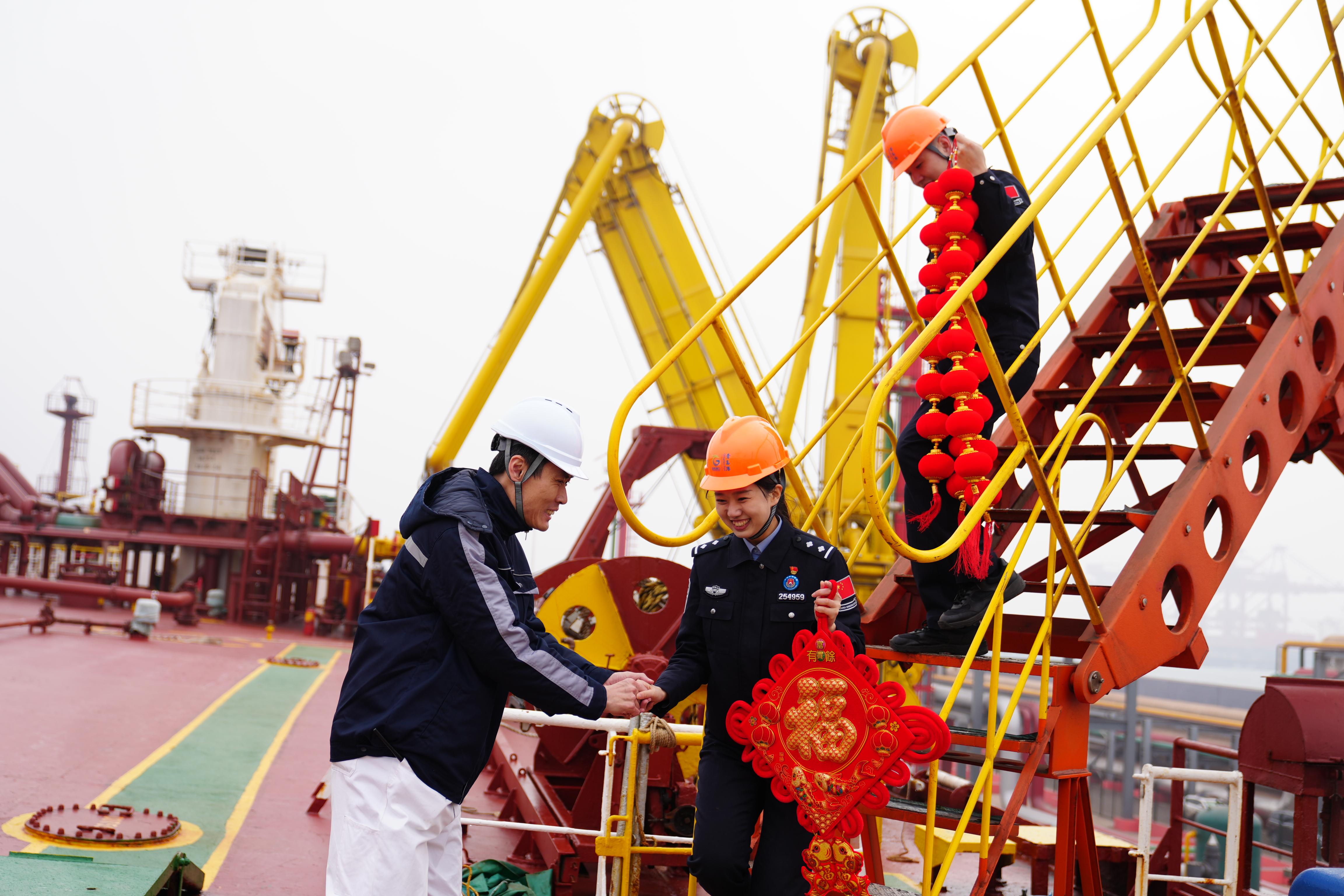 “今天是農(nóng)歷小年,我們這次過(guò)來(lái),打算和船員們一起寫(xiě)福字、包餃子,讓奔波在外的中國(guó)船員提前感受家鄉(xiāng)過(guò)年的氛圍,向外籍船員分享咱們中國(guó)民俗文化?!倍铱谶厵z站移民管理警察介紹。