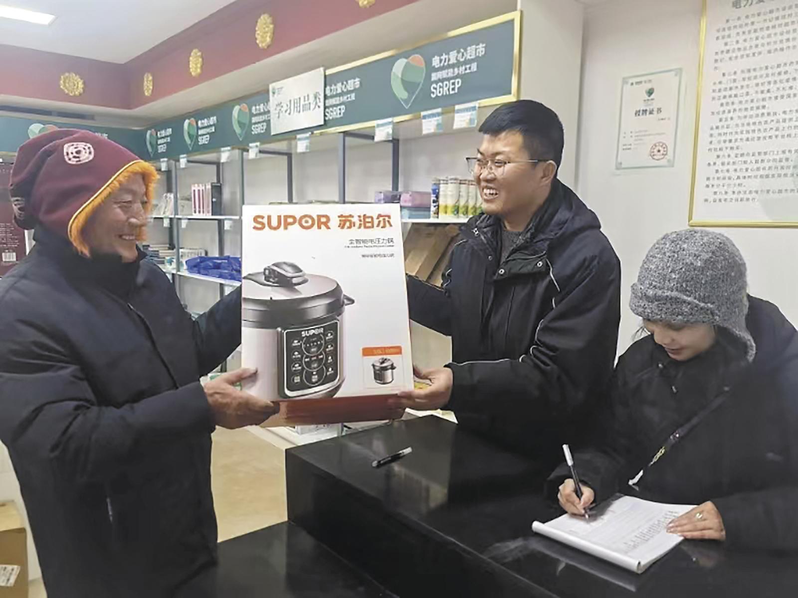 村民在“電力愛心超市”,挑選心儀的商品(國(guó)網(wǎng)果洛供電公司供圖)