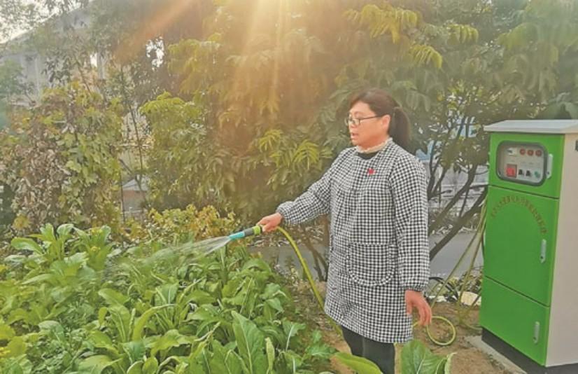 浪江屯村民溫化雪使用生活污水資源化利用智能處理設(shè)備澆菜