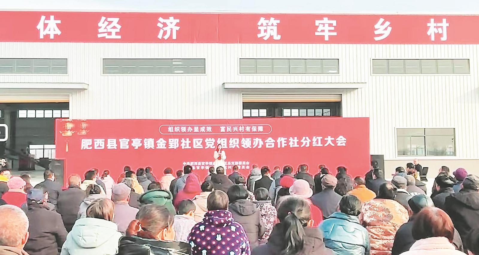 肥西縣官亭鎮(zhèn)金郢社區(qū)黨組織領(lǐng)辦合作社開(kāi)展分紅活動(dòng)(圖片由肥西縣委組織部提供)
