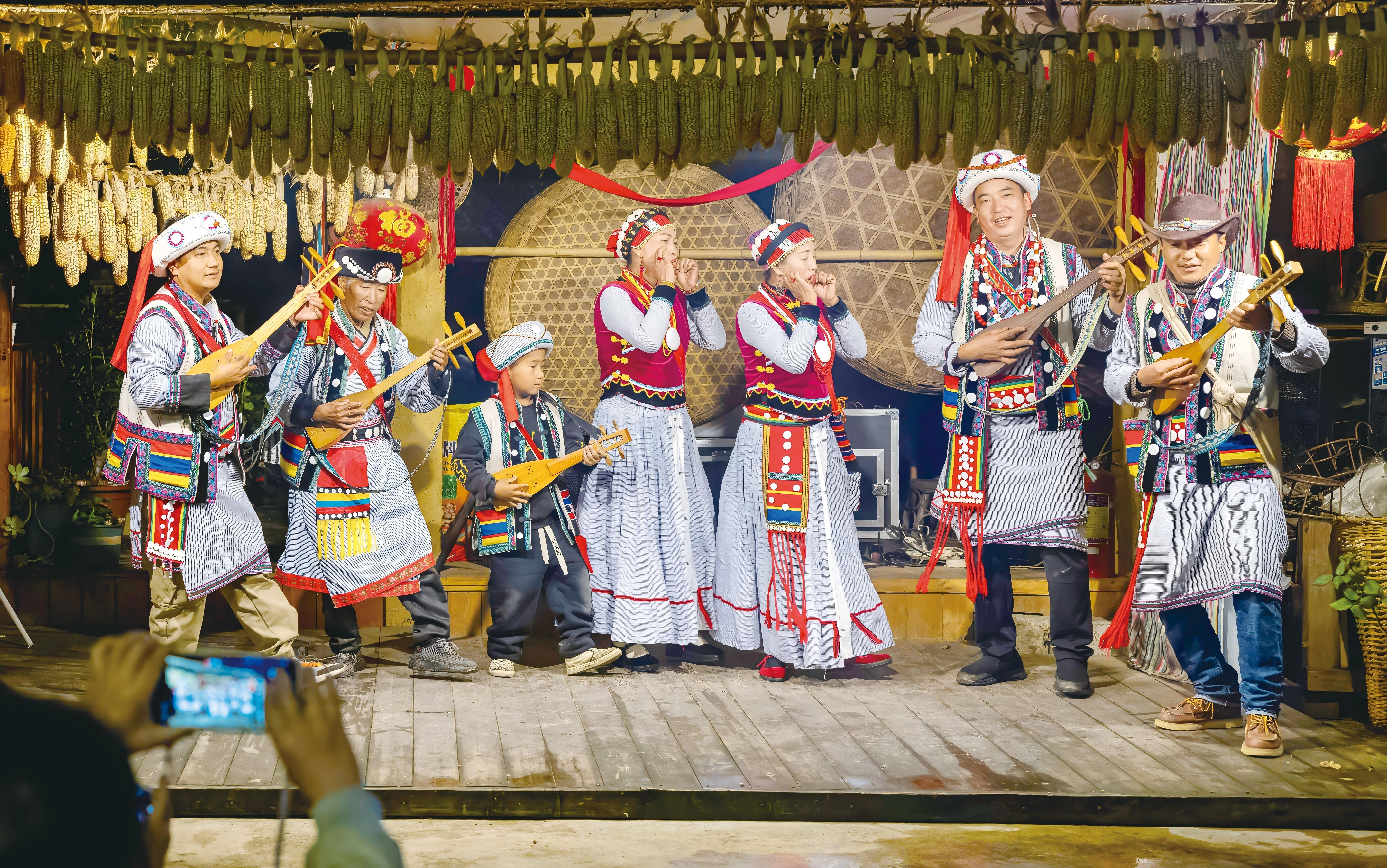 為此,他全身心投入到“非遺+旅游”融合發(fā)展的新路子中。他在民宿中設(shè)置了怒族文化展示廳,展示以往的農(nóng)耕生產(chǎn)生活用具。與此同時,他還組建了非遺展演隊,成員涵蓋了經(jīng)驗豐富的非遺代表性傳承人、德高望重的老藝人,中青年村民和七八歲的孩子,大家共同參與,形成了一條傳承的紐帶。